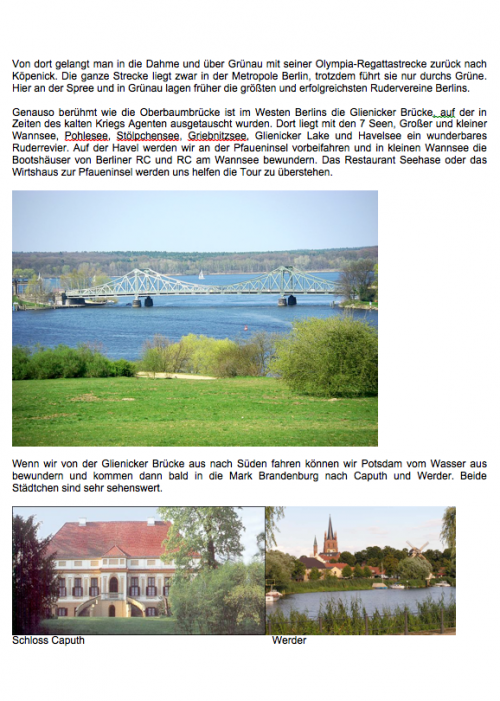 Clubwanderfahrt auf Spree, Havel und den Berliner Seen - Vom 9. bis 16. September geht es in die deutsche Metropole "Berlin". Hier eine Beschreibung der Tour, die von Werner Steiner organisiert und durchgeführt wird.