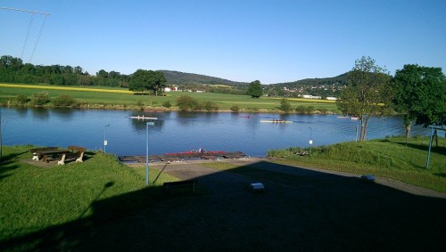Am 1. Tag wurde in Bad Karlshafen eingesetzt. Dann waren 50 km zu rudern; vorbei an Beverungen, Schloss Fürstenberg, Höxter bis Holzminden. Wir waren alle sehr froh, diesen sehr schweren Rudertag geschafft zu haben.