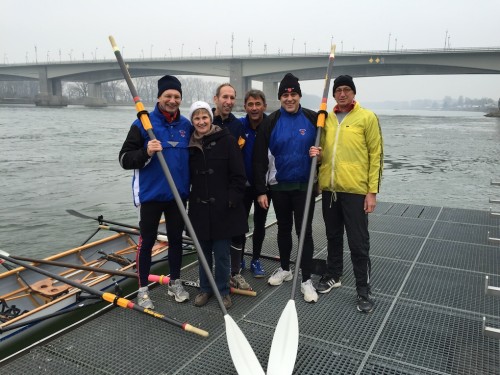 Trotzdem die Wolken an diesem 01. Januar recht tief hingen und es nasskalt war, gingen stolze vier Mannschaften aufs Wasser. Die Ersten legten bereits um 11:45 Uhr ab. In zwei Dreiern und zwei Vierern ruderten 15 WRCler auf der Hausstrecke zwischen Worms und Lampertheim wie gewohnt zunächst rheinaufwärts und passierten zusammen pünktlich um 14:00h die Rheinpromenade.