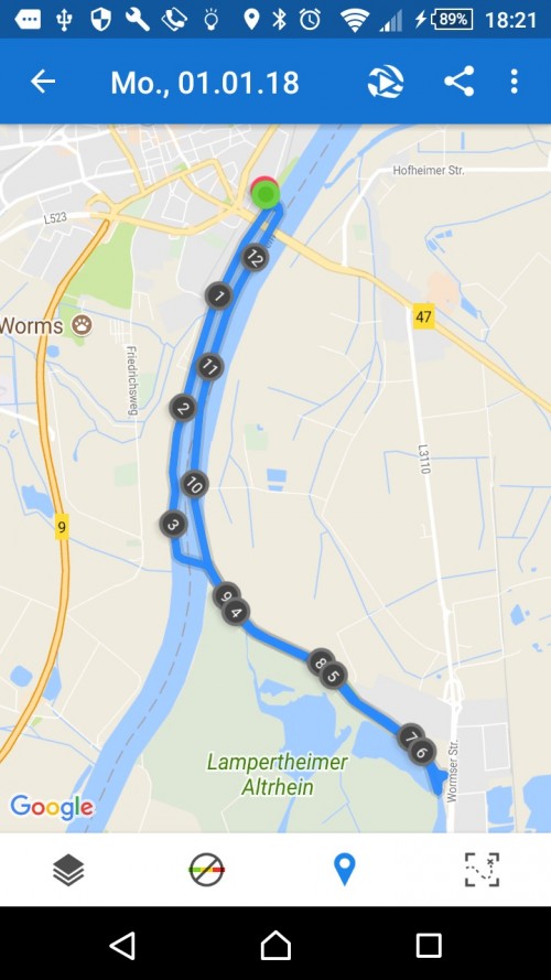 Die Strecken-Doku von Reinhold belegt, dass wir nach einem kurzen Spurt pünktlich um 14:00 zur Promenaden-Vorbeifahrt in Worms waren.