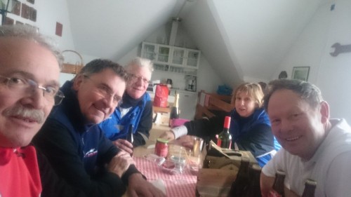 Reinhold Eppel, Alfred Lied, Michael und Doris Thier und Joachim Wolff "feierten" am 01.01.2018 im Klubhaus des WRC in Lampertheim. (v.l. / Selfie: Reinhold Eppel)