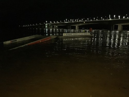 Auch in Lampertheim war Land unter. Selbstverständlich hielten auch hier die Verankerungen des neuen Stegs!