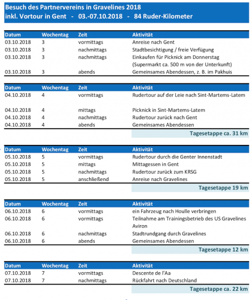 Wieder einmal mehr hat Christian ein Treffen mit unserem Partnerverein in Gravelines arrangiert. Und so startete eine Gruppe auch im Oktober 2018 zur Nordsee, um dort mit Ruderinnen und Ruderern auf der Aa zu rudern, die in Gravelines in die Nordsee mündet.