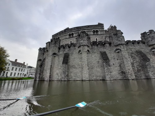 Am Donnerstag trafen wir uns in Gent, wo uns der KRS Gent wieder Betten und ein Boot zur Verfügung stellte. Dieses nutzten wir für eine schöne Rudertour durch Gent. Es ist schon nicht selbstverständlich, dass man beim Rudern mal eben in der Innenstadt anlegen und einen Kaffee trinken kann. Die weitere Strecke führte uns auf die Leie, die durch enge Kurven und viele schöne Fluss-Grundstücke geprägt wird. Nach einem Picknick ging es zurück zum Bootshaus.