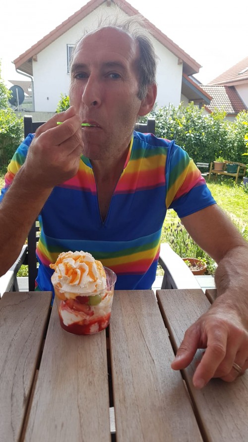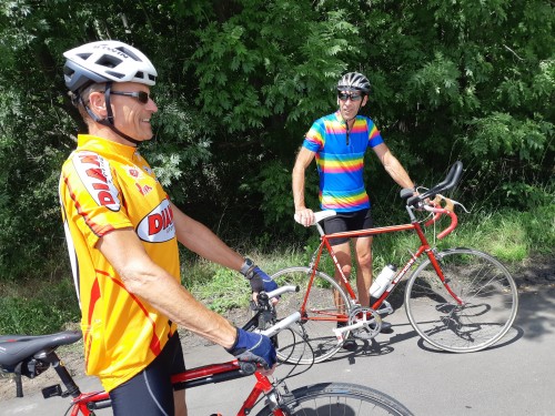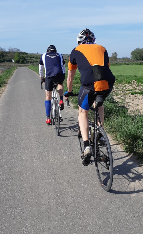 Die Gruppe lernte sich auch auf dem Rad immer besser kennen, so zeigte sich, dass „Michael, die Bergziege“ auf seinem Bianchi Retrobike am Felsenmeer unschlagbar ist. Analysen waren natürlich wie im Ruderboot schnell zur Hand („ei, da nemm isch noch 15 Kilo ab, dann gewinne ich da auch mal die Bergwertung“). „Peter der Planer“ zeigte sich enorm erfinderisch in der Tourenplanung, wobei ihm da seine frühere Triathlon Erfahrung zu Gute kam. Wobei die auch schon ein paar Jahre zurück liegt, wie manchmal zu Tage trat („ach, die Umgehungsstrasse gab es aber vor 15 Jahren noch nicht“)… Wir verfuhren uns in Hillesheim (dort gibt es ungefähr so viele Einwohner wie Sackgassen), nutzten die Fähre in Geinsheim (nicht mit Gernsheim zu verwechseln), integrierten ziemlich flotte EBike Fahrer in unser Feld („das MUSS mit Motor gewesen sein“), flickten gemeinsam Platten und suchten schon mehrmals gemeinsam den Radweg nach Riedrode („häh, hier haben wir uns doch schon letztes Mal verfahren“). Und auch jetzt, wo das Bootshaus wieder zur Rudern offen steht, wird die WRCycling Gruppe weiter fahren - am einheitlichen Trikotauftritt wird gearbeitet!