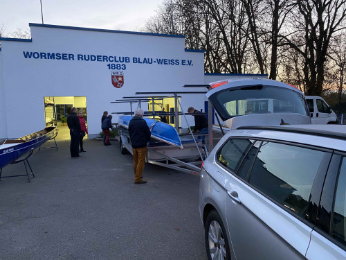 Zügig ging es zurück nach Worms, wo dank des Bootswagens schnell die drei Boote auf den Parkplatz geholt und geputzt wurden. 43 Wanderfahrtskilometer waren die Ausbeute dieses herbstlichen Tages. Da an dem Abend auch die Zeit umgestellt wurde, hieß es, sich versichern, dass im Winter die Ausfahrten am Samstagnachmittag und der bewährte Termin am Sonntagvormittag beibehalten werden würden. Gerne planen wir bereits die Saisonanfangsfahrt 2022- in der Hoffnung, dass dann alle Winterschläfer rechtzeitig wieder aus dem Bau kommen. Und weil ja 6 Boote auf den Hänger passen, sind weitere Ruderer sehr gerne gesehen.