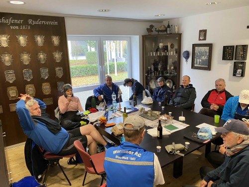 Speyerer Ruderer waren wegen des eigenen Abruderns in diesem Jahr nicht dabei. Da allerdings Detlef vom LRV mit von der Partie war, konnten wir die Mittagspause witterungsgeschützt bei einem shared Imbiss im Clubzimmer in Ludwigshafen verbringen. Hier wurden bereits die ersten Pläne für die Rudersaison 2022 geschmiedet.