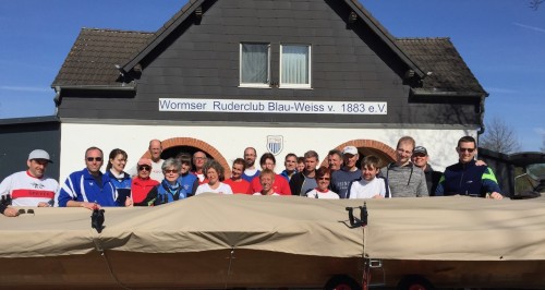 Am Sonntag (26.03.2017) morgen trafen wir uns um gefühlt 6.45 Uhr in Worms bzw. Lampertheim zur Fahrt nach Speyer. Trotz der Zeitumstellung hatte niemand verschlafen (Mama sei Dank). Das frisch eingeweihte Bootshaus des RG Speyer in Reffenthal mit schicker Sonnenterrasse und weitläufig gepflastertem Platz strahlte in der Morgensonne, die Bude vom Curry-King hatte leider noch geschlossen.