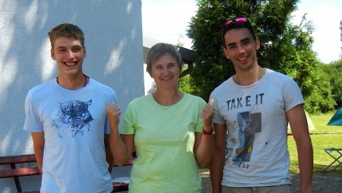 Sabine Teigland, 1. Vorsitzende, umrahmt - FSJ-ler des WRC Manuel Lang (l.) war verantwortlich für die Organisation des Sommercamp der Ruderjugend. Tatkräftige Unterstützung bekam er durch den ehemaligen FSJ-ler Lukas Diederich (r.);