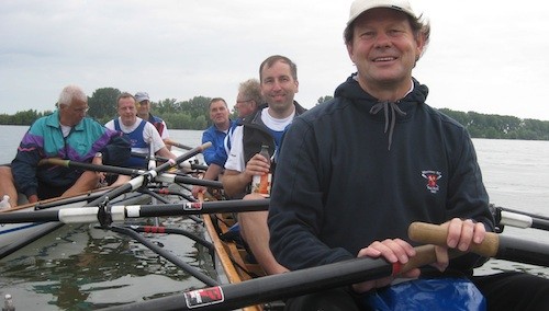 Am Wochenende lud der Ruderclub seine Mitglieder zum traditionellen „Frühstück der Ruderer“ ein. Der Einladung folgten viele Mitglieder, so dass die Terrasse des Al Fiume komplett durch den Ruderclub besetzt war. Doch bevor es auf die Terrasse ging, stand noch die Bootstaufe und eine Ehrung auf dem Programm. Im Hof des Ruderclubs waren der neue (gebrauchte)Bus, der neue Katamaran, der neue Hänger und auch der neue (gebrauchte) Achter, in dem auch schon die deutsche Nationalmannschaft saß, aufgestellt. Eigentlich hätte auch noch ein Gig-Doppelvierer mit Steuermann dort stehen sollen, aber dieser konnte leider nicht rechtzeitig durch die Bootswerft fertiggestellt werden.