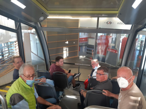 Abends sollte dann die gute Tradition des Dinners in der Bergalm Hohmatt fortgeführt werden. Die ist mit einem knackigen Fussmarsch von der Baspo in Magglingen zu erreichen, aber da müssen wir ja erstmal hin. Das gelingt uns mit der Standseilbahn, die ganz in der Nähe des SC Biels zu finden ist. 7 Schweizer Franken für eine Fahrt, aber gut ist ja Urlaub.