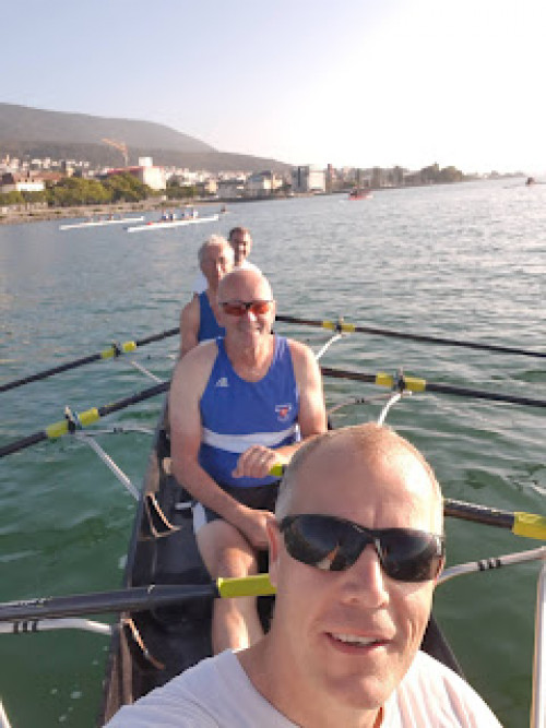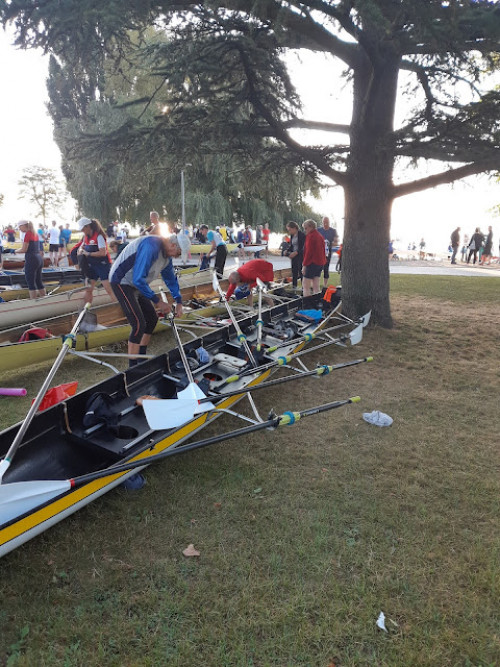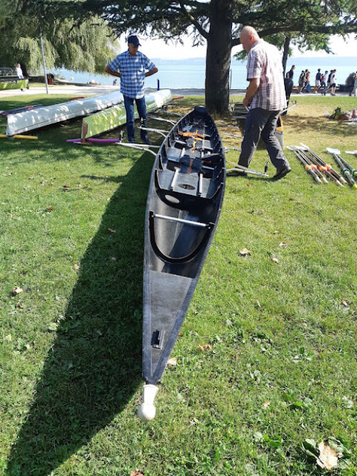 Kurz vor halb 9 begeben wir uns die Schlange zum Einwassern, etwas Chaos, aber wir kommen dank aktivem Anstehen wie immer rechtzeitig aufs Wasser und rudern locker die etwas mehr als 1000 m zum Start. Wie reihen uns hinter die Renndoppelvierer und Achter ein in guter Position. Pünktlich um 9 Uhr geht es los mit insgesamt 110 Booten, wie immer ein toller Anblick. Wir kommen gut weg, rudern etwa 3 km direkt neben einem Mannheimer/Karlsruhe Vierer nebenher, der durch eine Kampflinie beeindruckt, aber uns trotz der ungewöhnichen Taktik von 10er Zwischenspurts (bei 30 km?) dann doch ziehen lassen muss. Im Ziehlkanal haben wir einen guten Vorsprung vor einigen Rennbooten und fahren sehr gute Zwischenzeiten. Allerdings ist zu diesem Zeitpunkt bereits ein Gig Doppelvierer deutlich vor uns, der auch später den Preis für den schnellsten Gig Vierer in einer hervorragenden Zeit von 2:15 gewinnt. Im Bieler See erwartet uns heftiger Gegenwind, dem wir dann ab Kilometer 20 dann doch Tribut zollen müssen. Aber wir bringen auch das sauber hinter uns und sind mit einer Zeit von 2:22,53 sehr zufrieden. Der 16. Gesamtrang von 110 und laut Ergebnis der zweitschnellste Gig 4x+. Im Ziel bekämpfen wir die drohende Unterhopfung schnell mit dem gewohnt süffigen Bier, auch wenn die Schanktechnik Grund zur Unruhe gibt. Auch die Rheinruderer absolvieren ihre erste Bilac bravourös unter den schwierigen Bedingungen und kommen nach 2 h und 44 Minuten ins Ziel (43. Gesamtrang).