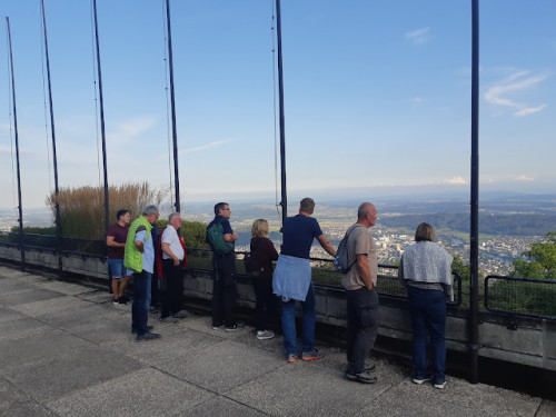 In Magglingen genießen wir erst kurz die Aussicht, leider ist die Fernsicht etwas eingeschränkt. Aber dennoch schön. Den Fussweg zur Hohmatt kennen wir schon gut, unsere Premiere Teilnehmer nicht, insbesondere nicht die Tatsache, dass es noch einige Höhenmeter sind auf den 20 Minuten...