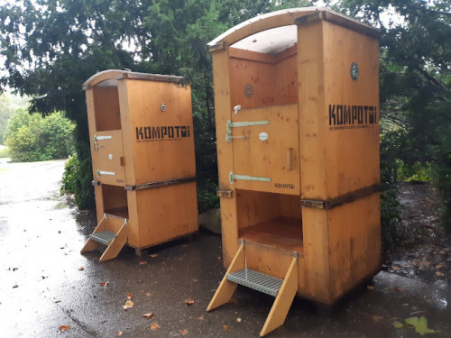 Der Renntag verläuft dann tatsächlich wie immer. Frühstück um 7 Uhr, Abfahrt um 7:30 zum rechtzeitigen "Einwassern". Auf dem Sattelplatz gibt es eine Neuerung: die sonst auch bekannten "Dixie Klos" wurden durch "Komposti-Klos" ersetzt. Sehr witziges alpines Holzdesign, die "Spülung" erfolgt durch Holzschnitzel. Was es alles gibt.
