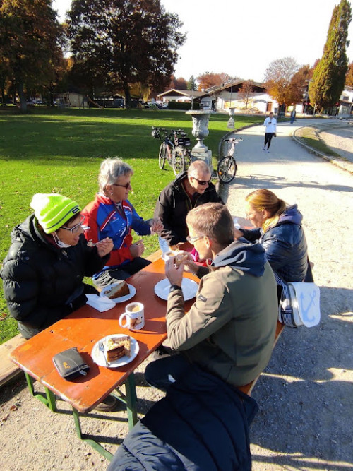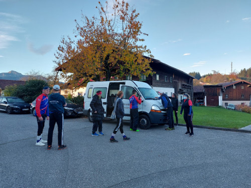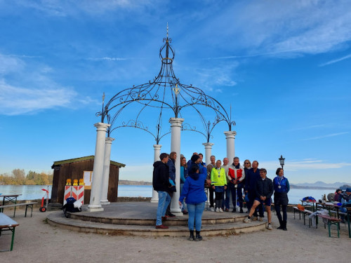 Sehr angenehm an der Veranstaltung ist der Startpunkt von 11 Uhr, der uns noch ausreichend Zeit für das sehr gute Frühstück lässt. Wir bewundern den Blick auf den vernebelten Chiemsee, kratzen die Scheiben des Mannheimer Clubbus frei (!) und machen uns auf den Weg nach Waging.