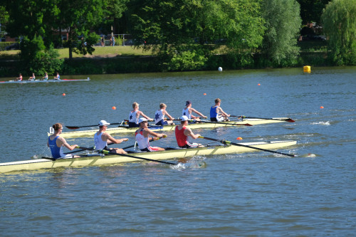 Bezahlt machte sich das um 14:00 Uhr, als sich das Wormser Boot gleich nach dem Start vorne im Feld platzieren konnte und über die Strecke allen Angriffen der Hamburger oder Münchner Mannschaften standhielt. Nur das Boot aus dem Ruhrgebiet war um eine Bootslänge nach vorne enteilt und konnte diese bis ins Ziel halten.