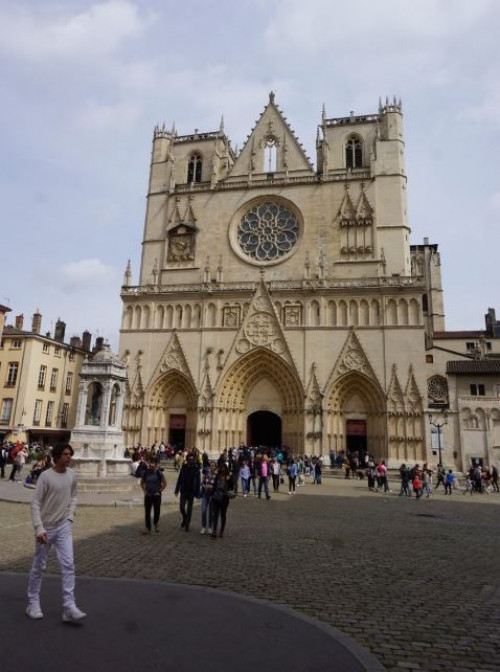 Typisch für Lyons Altstadt sind Häuser mit schmaler Front an der Straße und Durchgängen zu den Hinterhöfen mit weiteren Häusern sehr eng bebaut. Leider konnte die Kathedrale wegen eines Gottesdiensts nicht betreten werden. Auf dem Platz davor wurden passend zum Maitag Maiglöckchen feilgeboten. Eine Teilnehmerin, die deswegen ihre Geldbörse aus dem Rucksack geholt hatte, vermisste diese kurze Zeit später - und der Reißverschluss des Rucksacks stand offen. Großes Pech wegen der hohen gestohlenen Summe. Da konnten auch die Geschichten von Kaspar nicht hinwegtrösten.