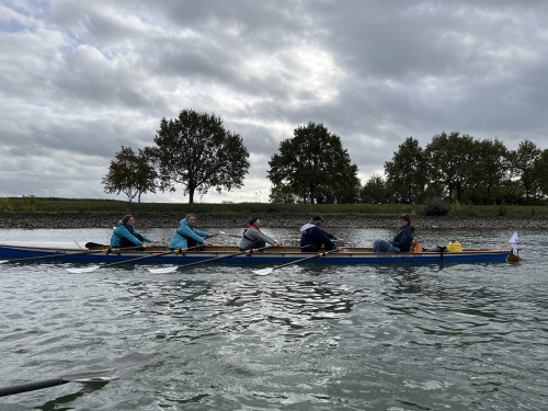 Und wieder war ein Jahr fast vorbei - am 28. Oktober stand die Saisonabschlussfahrt an. Es kamen Leute wie schon lange nicht mehr; neben den unerschütterlichen Wormser Hauptverdächtigen waren KameradInnen von Bamberg über Rhein-Neckar-Schiene bis sogar Bodensee vertreten. Summa sumarum mussten 22 RuderInnen aufgeteilt werden - also 5 Boote. Mehr ging transportmäßig nicht. Daher mussten auch noch vor dem Start die „Gauss“ und die „Biz“ aus dem Winterschlaf gerissen und aufgeriggert werden. Aber Chinaprinzip: viele Hände - schnelles Ende!