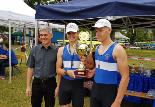 Einen Ehrenpreis für ihre Siege im Junioren Zweier ohne Steuermann wurden den WRC-Ruderern (von rechts) Jonas Burkhardt und Markus Feils überreicht. (Foto: Michael Schambach)
