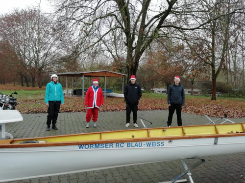 Einige Leistungsruderer vom Wormser Ruderclub Blau-Weiß ließen sich die Freude am traditionellen Nikolausrudern nicht nehmen und starteten ihre Ausfahrt dieses Jahr im Skiff, natürlich mit Abstand.