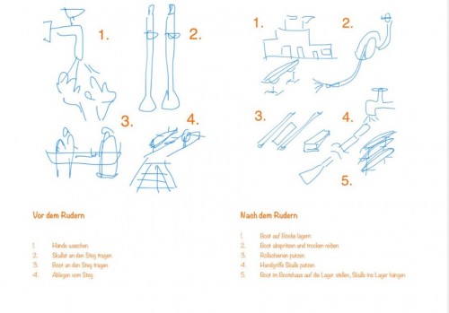 "Ruderordnung" - während Corona, skizziert von Johannes Wohlgemuth