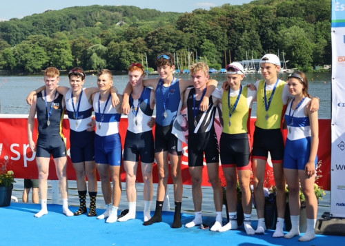 Lukas Schambach (re.) vom Wormser Ruderclub Blau-Weiß mit seiner Mannschaft
